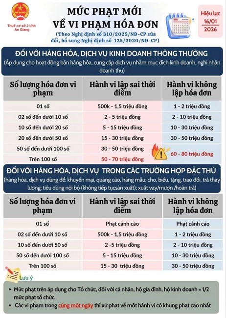 Nghị định số 310/2025/NĐ-CP của Chính phủ: Sửa đổi, bổ sung một số điều của Nghị định số 125/2020/NĐ-CP ngày 19 tháng 10 năm 2020 của Chính phủ quy định xử phạt vi phạm hành chính về thuế, hóa đơn. Hiệu lực thi hành từ 16-01-2025.
